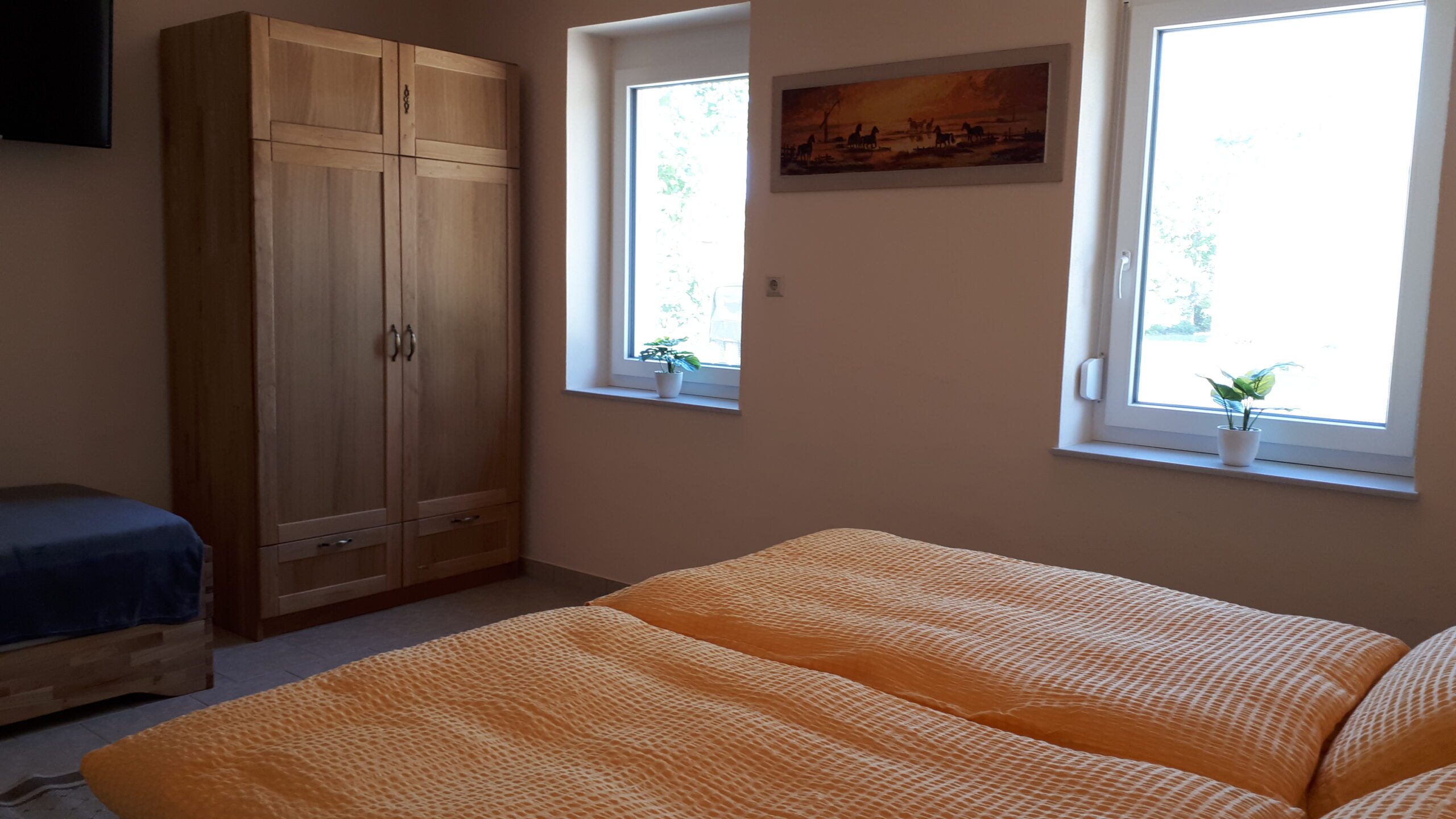Die im Erdgeschoss gelegene, etwa 40 m2 große Ferienwohnung eignet sich bestens für zwei bis maximal vier Gäste, die sich ein Schlafzimmer teilen möchten, zB Eltern mit Kindern.