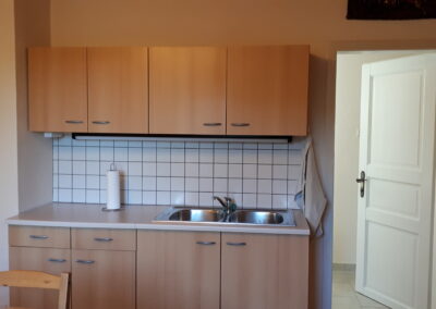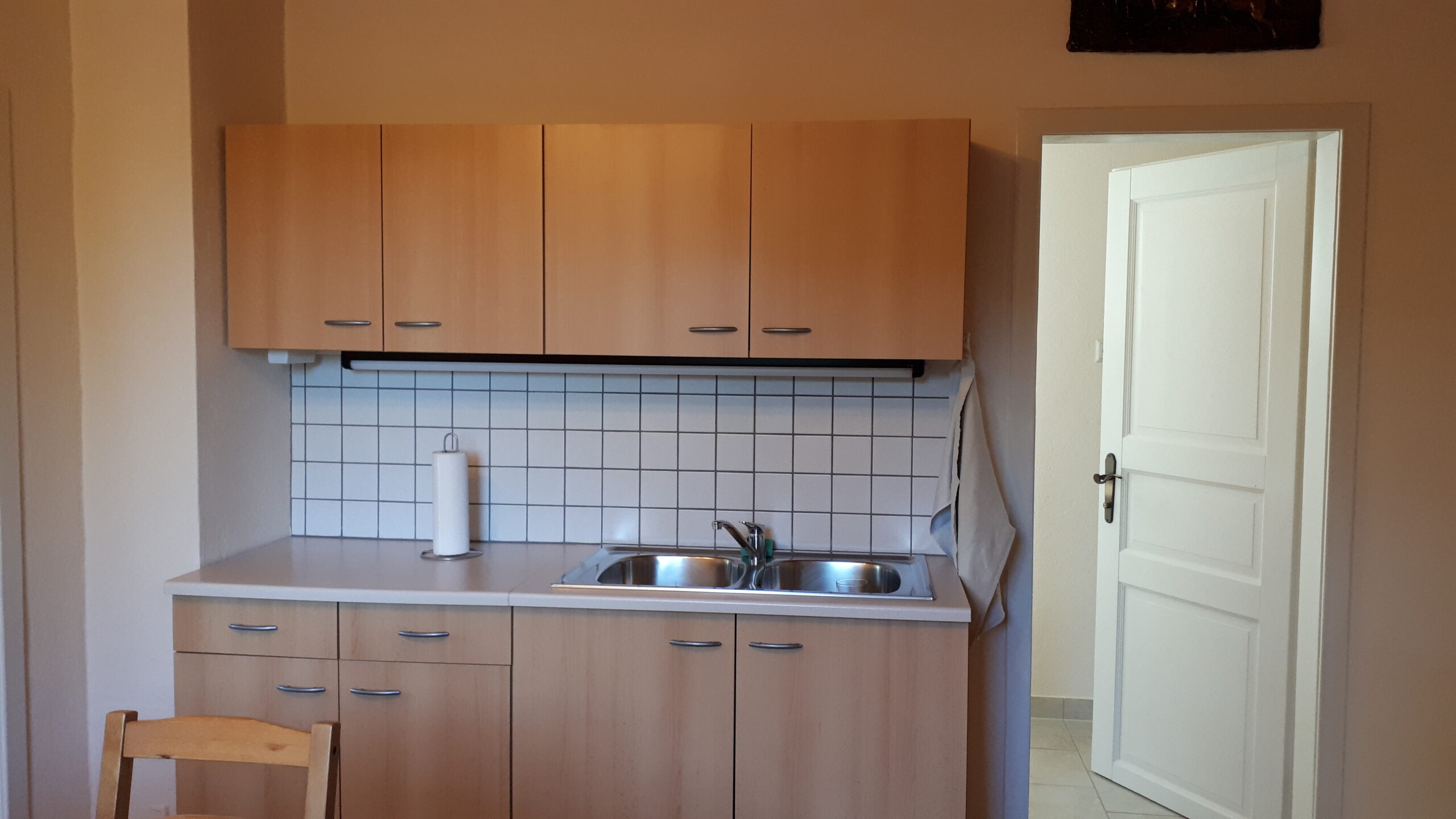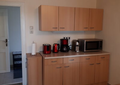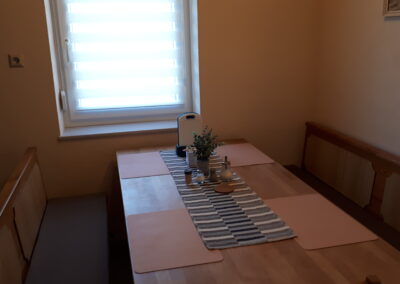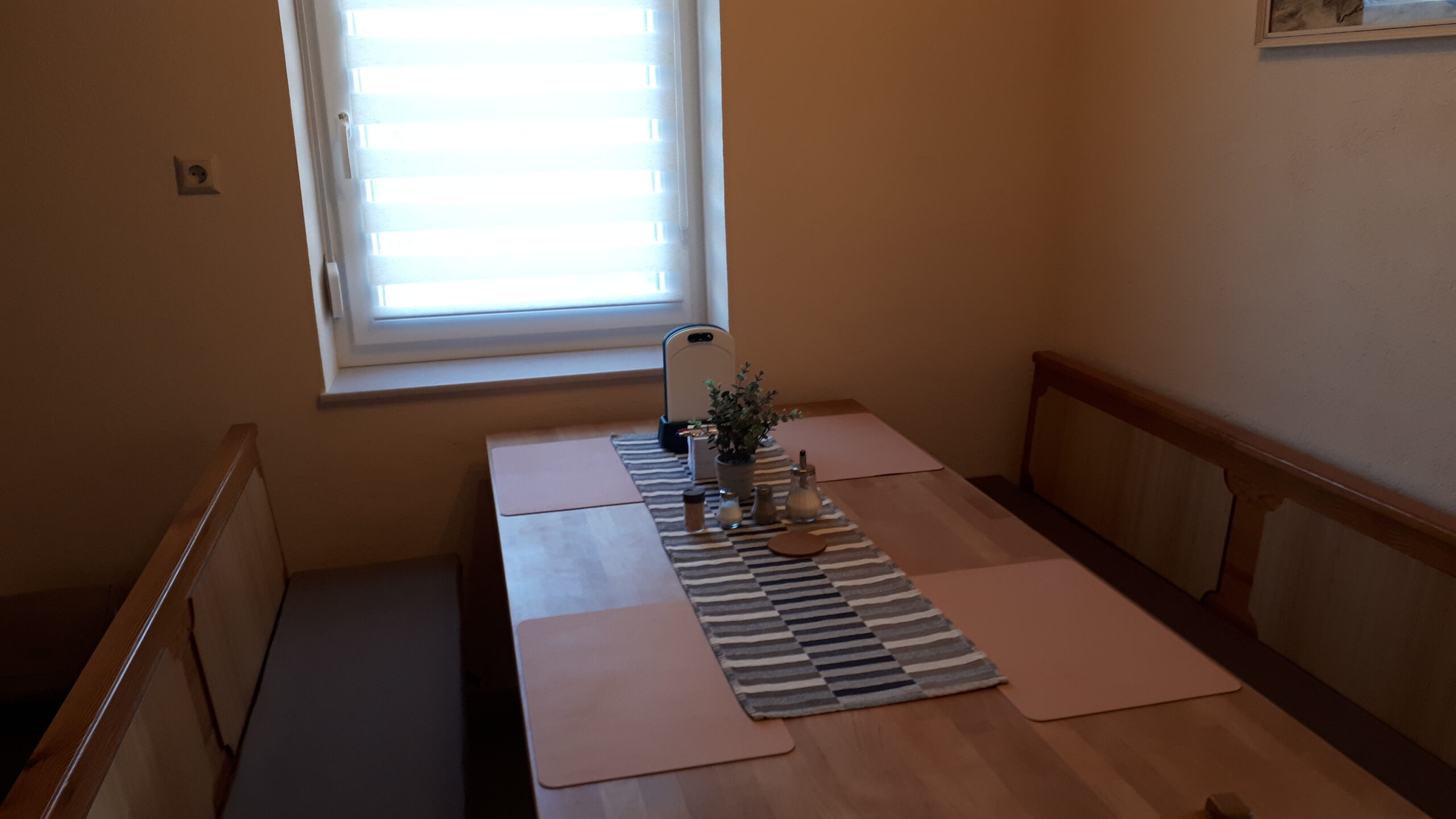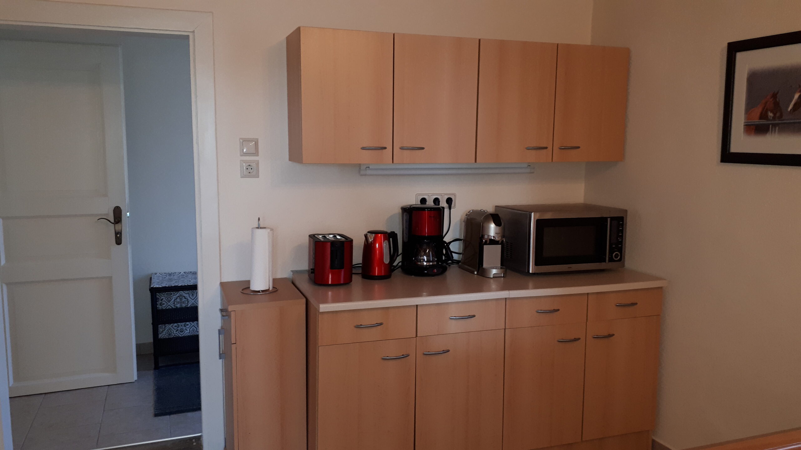 Der geräumige Sitzbereich in der Küche lädt zum gemeinsamen Frühstück ein. Die Küche ist ausgestattet mit einer Kühl-Gefrierkombination, Mikrowelle, Mini-Backofen, Einzel-Induktionsplatte, Toaster, Wasserkocher, Kaffeemaschine, Eierkocher, Mixer, etc. und selbstverständlich mit sämtlichen Kochutensilien und ausreichend Geschirr bestückt.