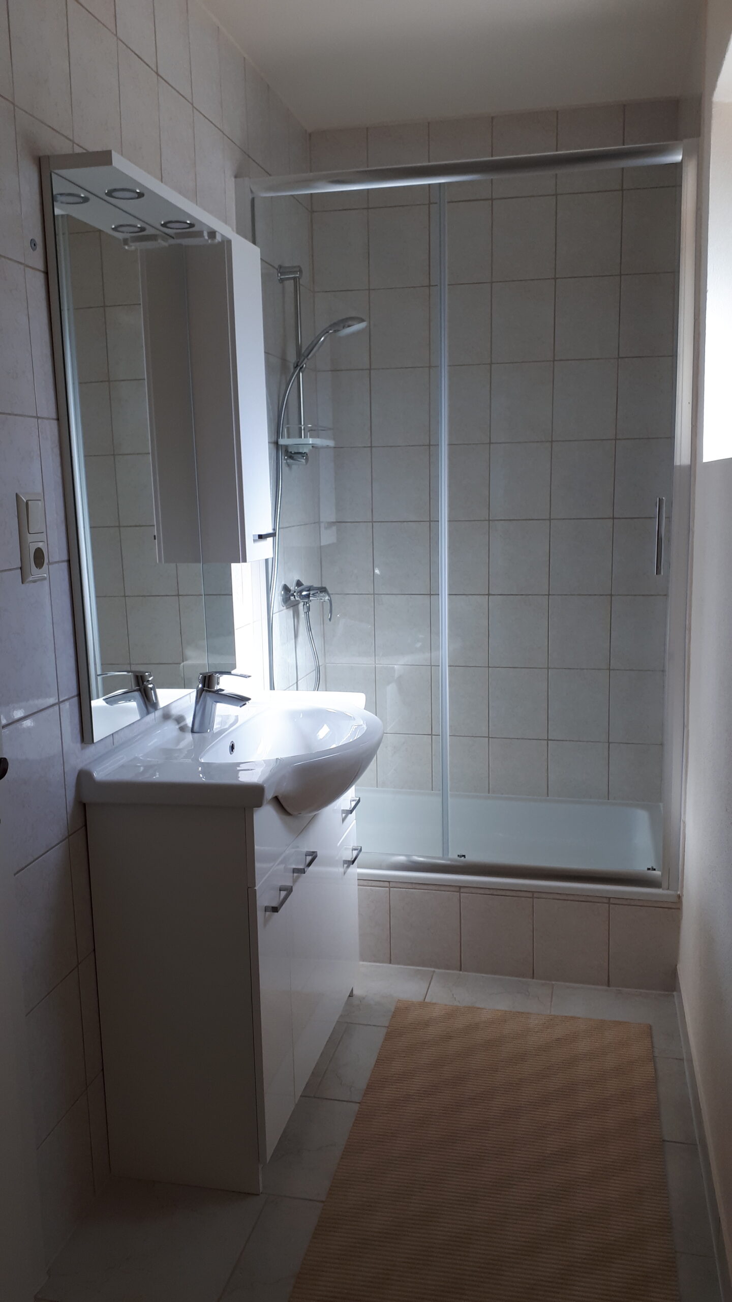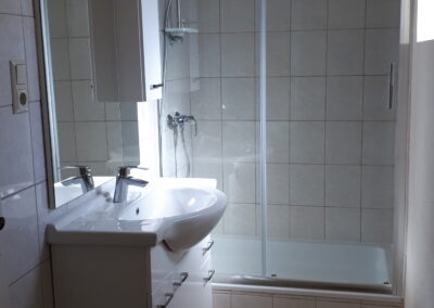 Im Bad erwarten Sie eine geräumige Dusche und ein Haarfön, das WC ist separat gelegen. Die Wohnung liegt im etwa 120 Jahre alten Kern des Gebäudes und verfügt ganzjährig über ein sehr angenehmes Wohnklima. Parken können Sie bequem direkt vor der Eingangstür.