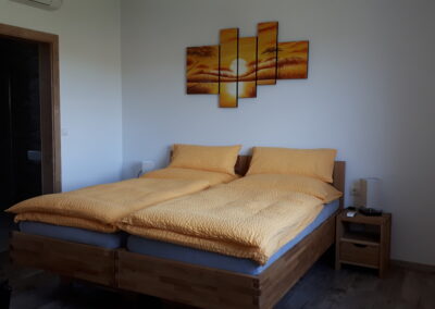 Ausgestattet mit zwei Einzelbetten oder einem großen Doppelbett, Flachbild-TV und Klimaanlagen, Außenrollläden und hofseitiger Ausrichtung der Zimmerfenster genießen Sie, nur wenige Meter neben der Bundesstraße, herrliche Ruhe.